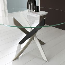 Die Tischplatte ist in transparentem, lackiertem oder kratzfestem Velvet-Glas erhältlich.