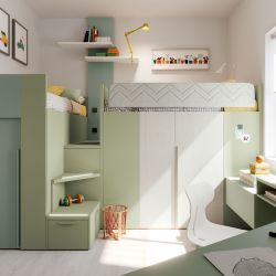- Zubehör : Modular mit Schreibtischen, Nachttischen, Sicherheitsgittern, integrierter Beleuchtung und Aufbewahrungsleitern.