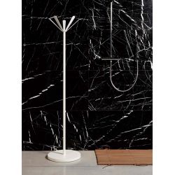 Der made in Italy Kleiderständer ist mit 5 Haken ausgestattet; er zeichnet sich durch die runde Fußbodenplatte, MDF (in der gleichen Farbe des Gestells) oder aus natürlichem Holz ist, aus.