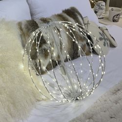 Es besteht aus weißen Eisendrähten, die mit Drähten mit LED-Leuchten umwickelt sind.