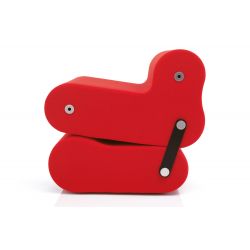 2022 gibt es neben der Version aus 100% Polyester in Rot eine Neuheit: den Multichair aus Sprinkles-Stoff von Kvadrat, der sich aus Wolle, Polyester und Nylon zusammensetzt. In beiden Fällen ist die Polsterung aus Polyester.