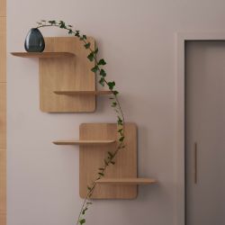 Das aus massiver Eiche gefertigte Stage-Regal ist ein vielseitiges Möbelstück, auf dem Sie kleine und große Gegenstände platzieren können, die Ihre wichtigen Momente darstellen. Es kann als einzelnes Möbelstück oder in Kombination mit anderen Regalen verwendet werden, um Wandkompositionen zu schaffen und dabei mit Farben und Anordnungen zu spielen.