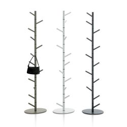 Moderner, vertikaler Kleiderständer aus lackiertem Stahl. Seine Form erinnert an eine Alge am Meeresgrund. Die Besonderheit sind die 12 ausrichtbaren Haken, die der ganzen Höhe entlang zu finden sind.