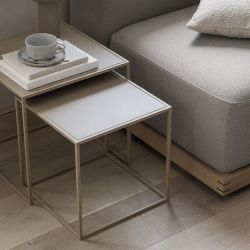 Geometrisch, vielseitig, essentiell. Die Fera Beistelltische mit ihrer minimalistischen, kubischen Form bestechen durch ihre Funktionalität und ihr schlichtes Design. Ideal als Tischplatte neben dem Sofa, als alternativer Nachttisch oder als diskretes Dekorationselement.