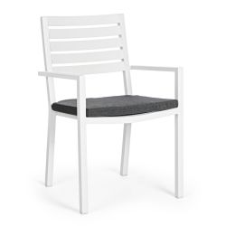 Outdoor-Stuhl mit Armlehnen mit Kissen.