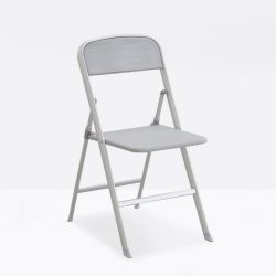 Klappbarer Stuhl aus Metall in Aluminium satiniert lackiert.