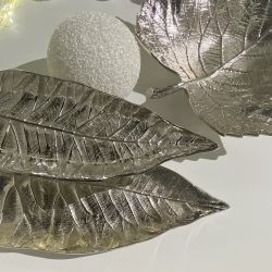 Es besteht aus silberfarben lackiertem Metall und ist von den Formen zweier überlappender Blätter inspiriert.