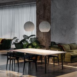 Eine Lampenkollektion mit einzigartigem Stil, die aus der Zusammenarbeit zwischen Diesel Living und Lodes hervorgegangen ist und Elemente industrieller Inspiration mit leichten Materialien wie mundgeblasenem Glas kombiniert. Diesel Living with Lodes-Lampen statten sowohl das Zuhause als auch öffentliche Räume mit einem düsteren und vielseitigen Stil aus.