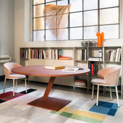 Diese Desalto-Tischkollektion hat ein skulpturales und essentielles Design, das der Schwerkraft zu trotzen scheint. Leicht anzusehen und gleichzeitig äußerst solide verleiht der Element-Tisch dem Esszimmer eine unverwechselbare Persönlichkeit.