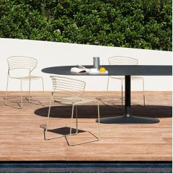Koki Wire ist eine Stuhlkollektion mit leichtem Design und geschwungenen, aber dennoch markanten Formen. Dieser Stuhl ist für den Außenbereich geeignet und ideal für die Einrichtung eines Essbereichs auf der Terrasse oder im Garten.