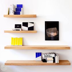 Das Wandregal besteht aus natürlichem und schwarz gebeiztem Eichenholz und ist in drei verschiedenen Größen erhältlich: