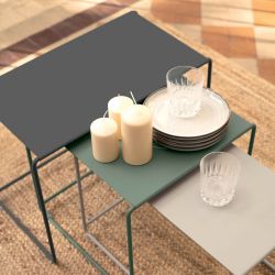 Dieses Set aus Metall-Couchtischen von Fermob besticht durch sein schlichtes Design und lässt sich vielseitig kombinieren. Ob im Wohnzimmer, Garten oder auf der Terrasse – die Tische sind äußerst vielseitig: Sie können einzeln oder zusammen neben dem Sofa, an verschiedenen Stellen im Wohnzimmer oder sogar nebeneinander platziert werden, um die Ablagefläche optimal zu nutzen.