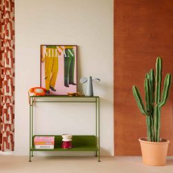 Sein minimalistisches Design offenbart sich in den Details: ein dezentes, aber funktionales unteres Regal , eine Tiefe, die auch für kleinste Räume geeignet ist, und eine Auswahl an Fermob-Farben , mit denen Sie je nach Stil Ihres Zuhauses Harmonien oder Kontraste schaffen können.
