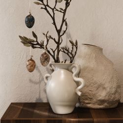 Diese Blumenvase erinnert an die Formen traditioneller Terrakottavasen und verfügt über zwei Griffe mit geschwungenen und femininen Linien.