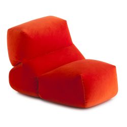 Die Polsterung besteht aus Polystyrol und Schaumgummi. Der Bezug ist aus rotem Kvadrat RAF SIMONS-Samt.