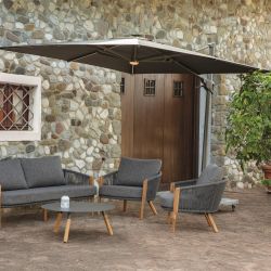 Verona ist ein Sonnenschirm mit schlichtem, modernem Design, der sich mühelos an jeden Außenbereich anpasst, von privaten Gärten bis hin zu Entspannungsbereichen in Hotels und Clubs.