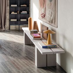 Yaku ist eine Bank, die sich durch lineare, klare und elegante Formen auszeichnet, bei denen Holz und seine Maserung eine Hauptrolle spielen.
