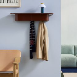 Korpus Shelf von Hay ist ein farbenfrohes Regal aus recyceltem Aluminiumblech. Es entstand aus der Idee, ein langlebiges, widerstandsfähiges und leichtes Objekt zu schaffen. Schlitze auf der Rückseite erleichtern die Montage, während versteckte Haken in der Säule zusätzliche Aufhängemöglichkeiten bieten.