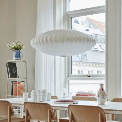 Die Pendelleuchte Nelson Saucer ist von mit Seide überzogenen Lampen inspiriert.