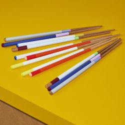 Color Sticks sind eine moderne Variante traditioneller asiatischer Essstäbchen. Sie zeichnen sich durch ein Farbblockdesign aus und bestehen aus Bambus und Buche.