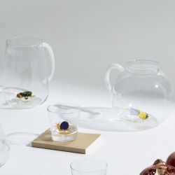 Der Krug kann zum Servieren von Wasser oder anderen Getränken verwendet werden und wird gleichzeitig zu einem dekorativen Element für den Tisch. Perfekt kombinierbar mit Brillen aus der gleichen Kollektion.