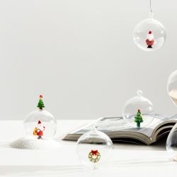 Jede Kugel ist aus klarem Borosilikatglas handgefertigt und zeigt die bezaubernde Figur einer typischen Weihnachtsfigur. Dank der Transparenz des Glases kann diese kleine Skulptur aus jedem Blickwinkel bewundert werden.