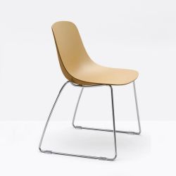 Das Kufengestell ist aus verchromtem oder lackiertem Stahl, während der Sitz aus glasfaserverstärktem Polypropylen, einem ungiftigen, fleckabweisenden und kratzfesten Kunststoff, ist. Der Sitz ist in verschiedenen Doppel-Nuancen verfügbar.