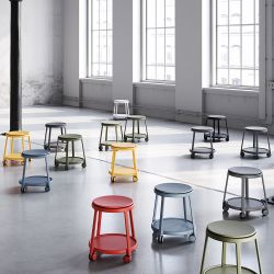 Die Struktur des Hockers besteht aus lackiertem Metall, während der Sitz aus Polypropylen besteht. Sitz und Struktur sind in der gleichen Farbe.
