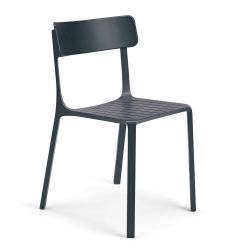 Bei dieser Outdoor-Variante ist die Sitzfläche mit horizontalen Schlitzen versehen, die das Abfließen von Regenwasser ermöglichen. Sitzfläche und Gestell bestehen aus strukturiertem Aluminium , die Rückenlehne aus Polypropylen .