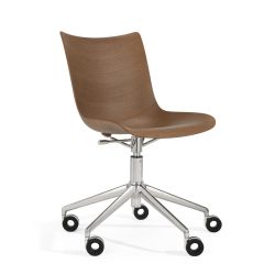Der Stuhl hat fünf Speichen mit Rädern, die sich für die stilvolle Dekoration des Arbeitsbereichs oder des Büros eignen.