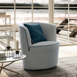 Abgerundete Linien zeichnen den Sessel Daffy aus, dessen Gestell aus E1-klassifizierten Holzplatten besteht, die mit Tecnoform bezogen sind.
