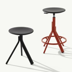 Der Main-Hocker ist drehbar , ein Element, das ihn zu einem flexiblen Sitz macht, der sich gut für zahlreiche Umgebungen eignet: vom Büro über informelle Coworking-Spaces bis hin zu Hause als Sitzgelegenheit für das Esszimmer, die Küche oder das Wohnzimmer.