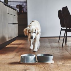 Doppio ist ein Hundenapf-Set mit elegantem Design, verziert mit raffinierten Farben und Materialien.