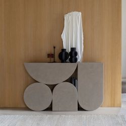 Ästhetische Balance zwischen Bein und Platte, um verschiedene Räume des Hauses mit starker Persönlichkeit einzurichten, vom Eingangsbereich bis zum Übergang zwischen Wohn- und Schlafzimmer. Der Konsolentisch Shape spielt mit geometrischen Formen, hinter denen sich nützliche und funktionale Ablagen verbergen. Tatsächlich eignet sich dieser Konsolentisch dank seiner durchgehenden Lackierung auch als zentrales Element.
