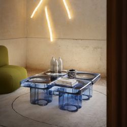 Das Prinzip ist immer dasselbe: ein einziges Volumen aus geblasenem Glas. Es ist immer noch Soda, aber mit dem Wunsch, näher heranzukommen: Sie können die Oberfläche durch Kombinationen erweitern oder durch das Mischen der verschiedenen Formen raffinierte Kompositionen schaffen.