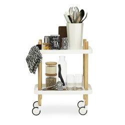 Die vier Räder aus Gummi und lackiertem Stahl (entsprechend der Farbe der Regale) ermöglichen es Ihnen, den Trolley in jedem Raum leicht zu bewegen.