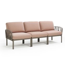 Komodo 3 ist ein Dreisitzer -Sofa für den Außenbereich, ideal, um die Veranda oder den Garten in einem modernen Stil zu dekorieren.