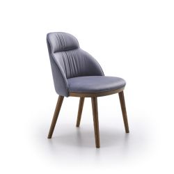 Bequemer Stuhl mit umhüllender Rückenlehne, weich wie eine Wolke, perfekt für die Einrichtung des Esszimmers mit Eleganz und Klasse. Reich an Details, die den Unterschied machen, wie zum Beispiel die geformte Rückenlehne, die mit Stofffalten verziert ist.