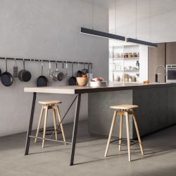 Rückenloser Hocker mit essentiellen Formen. Dieser Sitz lässt sich perfekt mit der Küchentheke kombinieren, seine Einfachheit passt sich leicht an verschiedene Stile an.