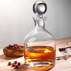 Die aus transparentem Kristall handgefertigte Flasche hat ein Fassungsvermögen von 1000 cc und misst (Ø x H): 13 x 9,5 cm.