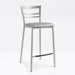 Der lackierte Metallhocker kombiniert sich perfekt mit einer Kücheninsel und ist mit satiniertem Effekt oder in verschiedenen matten Farben lackiert verfügbar.
