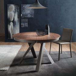 Der Emisfero-Tisch zeichnet sich durch die geometrische Form der Beine aus, die im Esszimmer einen angenehmen ästhetischen Effekt erzeugen. Die Platte besteht aus Holz und ist mit einer zentralen Verlängerung erweiterbar. Die Tischfüße sind verstellbar.