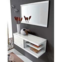 Dielenmöbel in folgendem Finish erhältlich: Weiss oder Taubengrau mit Schiebetür und Ebene in der Farbe Rot, Weiß oder Braun Der Spiegel hat den Rand in der Farbe des Möbels.