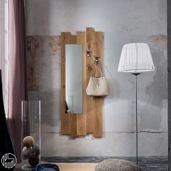 Dieser moderne Spiegeleingang mit zwei Metallbügeln ist aus massiven Eichenholzplatten gefertigt.