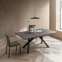 Dieser Tisch mit fester Platte vervollständigt die Esszimmereinrichtung mit einem modernen Stil.