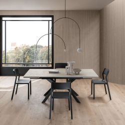 Dieser Tisch mit ausziehbarer Tischplatte vervollständigt die Esszimmereinrichtung mit einem modernen Stil.