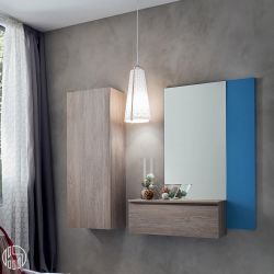 Elegant und modern ist dieses Eingangsmöbel komplett mit Spiegel und Kleiderschrank mit zwei Kleiderbügeln und Regal.