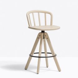 Der Nym-Hocker ist aus einer Neuinterpretation der traditionellen englischen Windsor-Stühle entstanden. Ausgestattet mit einem praktischen Drehmechanismus und einer bequemen Rückenlehne ist dieser Made in Italy Hocker ideal, um den Bereich um die Insel oder Halbinsel in der Küche zu dekorieren.