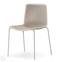 Dieser Stuhl verfügt über ein 4-beiniges Stahlgestell mit 14 mm Durchmesser, während die Sitzschale aus Polypropylen im Mehrkomponenten-Spritzgussverfahren mit mattem, kratzfestem Finish auf der Vorderseite und glänzendem Finish auf der Rückseite gefertigt wird.
