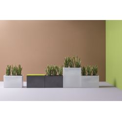 Kado ist aus Polyethylen in matter Ausführung und in verschiedenen Farben verfügbar. Dieses Material ist besonders stoßfest und witterungsbeständig; es ist auch ungiftig und wiederverwertbar.